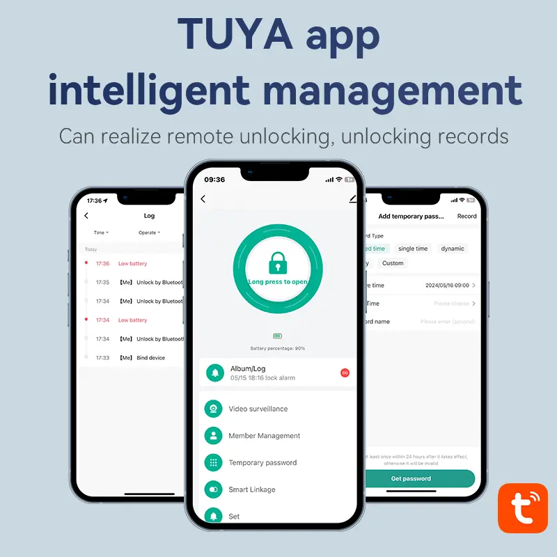 - Geleneksel Yöntemler: Çeşitli kullanıcı ihtiyaçları ve çifte güvenlik için şifreleri, fiziksel anahtarları, IC kartlarını ve geçici kodları korur.